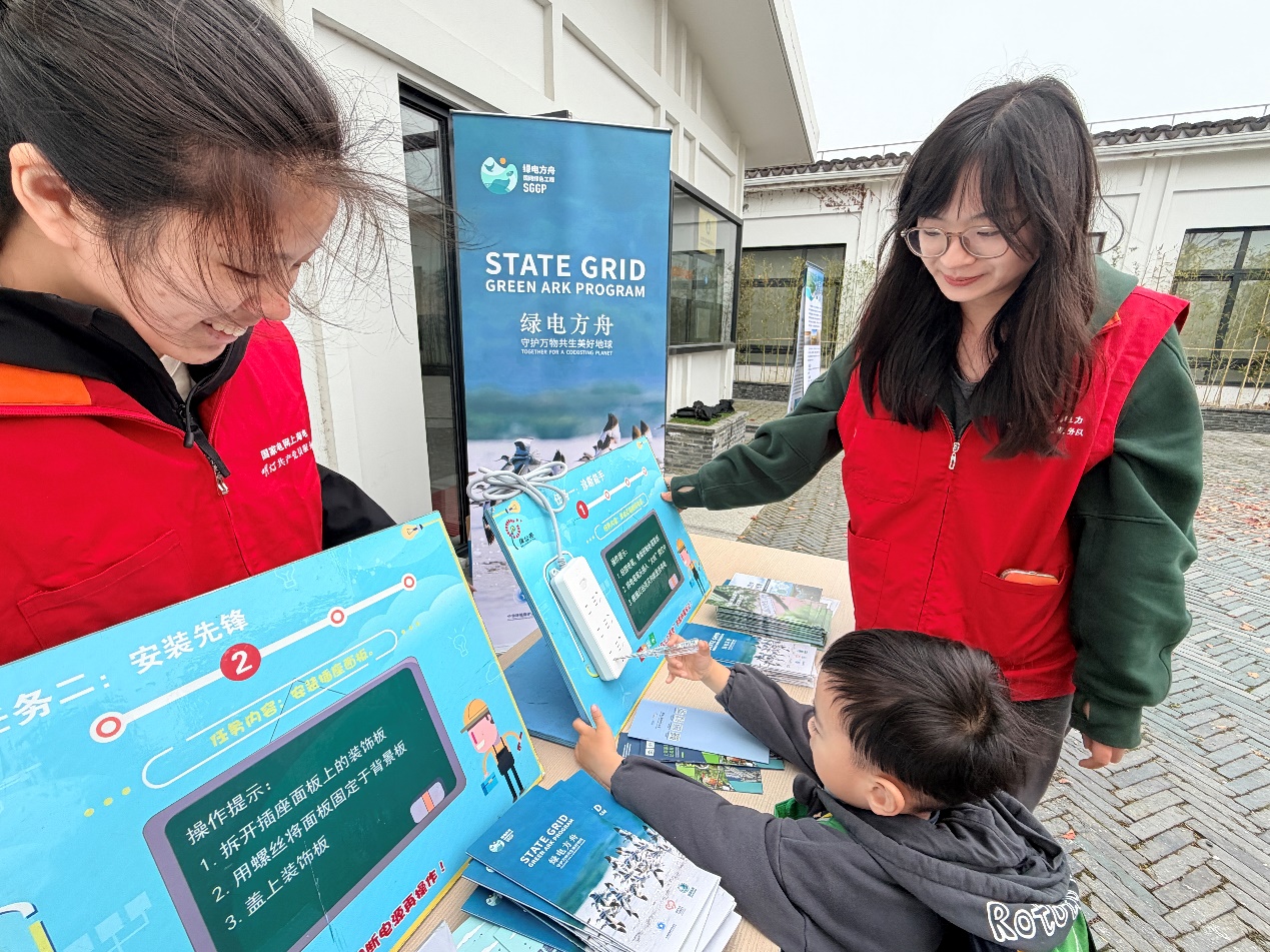 在当天举行的“九段沙湿地探索家科普日”活动中,国网上海电力与九段沙管理事务中心携手组建了“生态环保+电力服务”志愿者联盟。在九段沙湿地生态展示馆内,志愿者们通过讲解、宣传手册和互动游戏,向前来参观的青少年普及生态保护和绿色电力知识,介绍鸟类与电网和谐共生的实践案例。随后,志愿者带领青少年们走出展示馆,沿着堤岸实地观察湿地鸟类,一睹飞羽精灵的身姿,聆听此起彼伏的鸟叫。大家在轻松的氛围中,增强爱鸟护鸟意识,理解绿色用电对生态环境的重要意义。