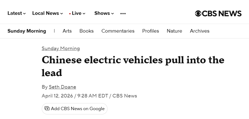 CBSNEWS近日发文称,英国智库新汽车(New Automotive)的执行董事本·内尔梅斯表示:“中国领先世界很多。中国在创新上的长期投入正开始回报。”
