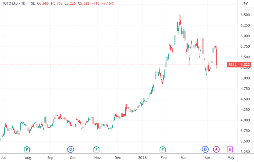 最新案例来自今年的“半导体牛股”——日本卫浴制造商TOTO。周一有消息称,公司已经在通知业务合作伙伴,暂停接受预制和模块化浴室的新订单,尚不清楚何时能恢复接单