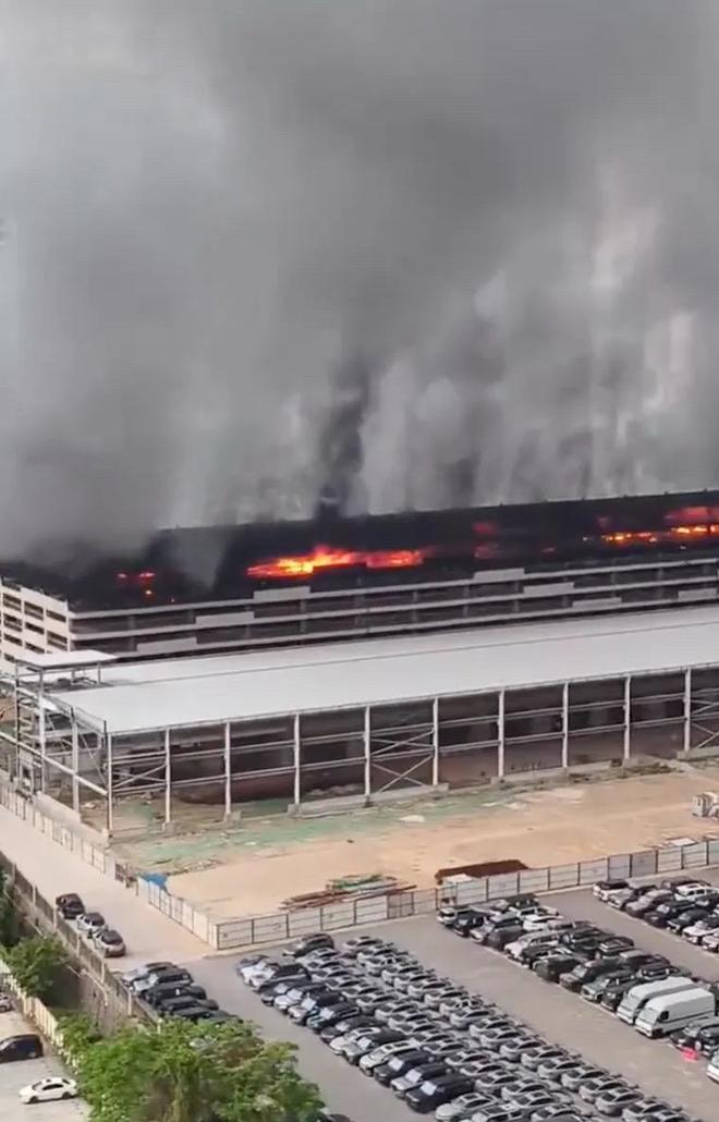 ▲多名网友发布视频称,深圳比亚迪坪山工厂出现火情
