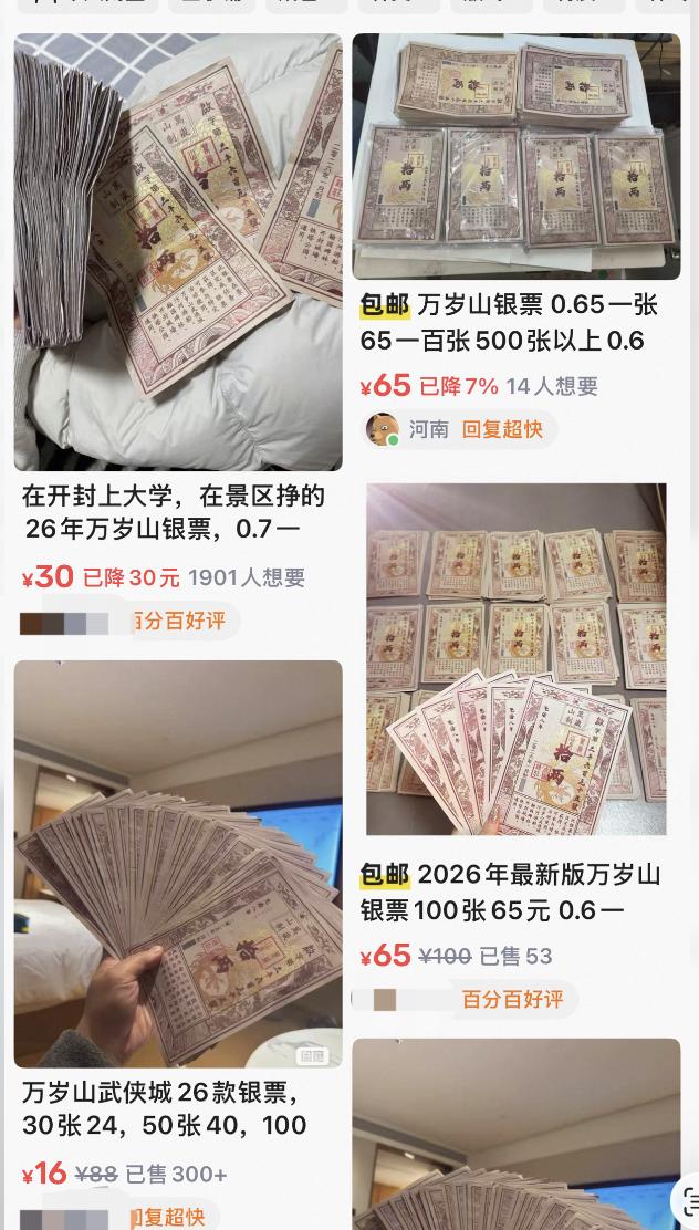 4月12日,有博主在社交平台发帖称“万岁山假票泛滥,没人管管吗”,并配发多张图片。帖文称,以“颜色发暗偏红、背面有条纹”等特征可用于辨别真假“银票”,引发网友关注。评论区中,有网友表示“第一次听说还有假银票”,也有人质疑“如果按这些特征判断,是不是说明假票已经很多了”。还有网友留言称,相关票据可能通过二手平台流出,真假难辨。