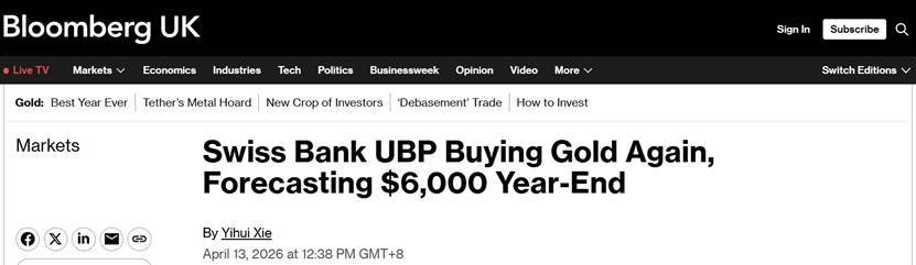 据彭博社报道,在因伊朗战争引发的金价暴跌而大幅削减黄金持仓后,瑞士私人银行瑞联银行(Union Bancaire Privée,简称UBP)如今再次买入黄金,称其认为黄金的长期前景依然向好。