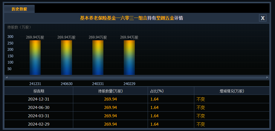 资料显示,基本养老保险基金一六零三二组合早在2022年三季度首次买入,持股达273.53万股,当年四季度增持84.21万股至357.74万股,然后一直持有不变。截至2025年四季度,位居公司前十大流通股东第五位。