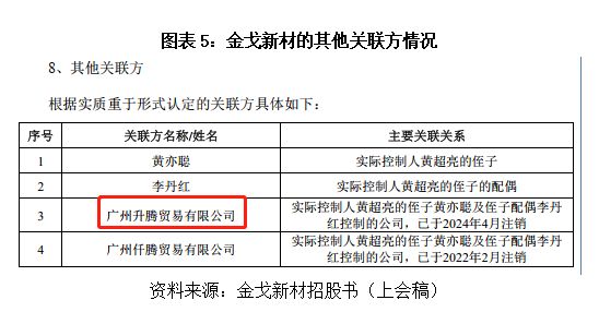 再说说关联方广州升腾贸易有限公司(以下简称“升腾贸易”)。这家公司只向金戈新材销售,2023年终止交易,2024年直接注销了。