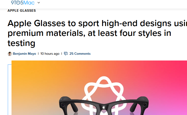 4月13日消息,据彭博社记者古尔曼日前透露,苹果智能眼镜已进入密集测试阶段,至少四种镜框款式同步研发,主打高端设计与奢华材质,预计2027年正式亮相。