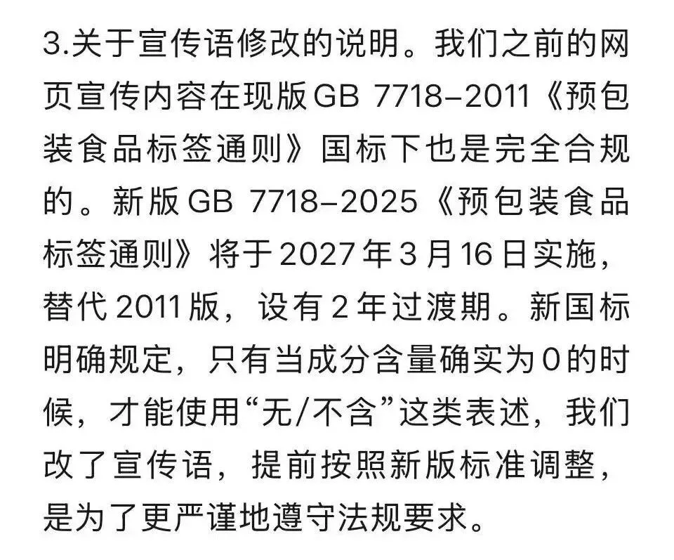 此外,针对张女士因解读配料表收到律师函一事,张律师明确表示,消费者基于产品标签信息进行分析、转述并表达个人理解,属于对商品信息的合理评价,只要未捏造事实、未进行侮辱诋毁,就不构成侵权,厂家以此为由发送律师函甚至威胁采取刑事手段,明显缺乏法律依据。