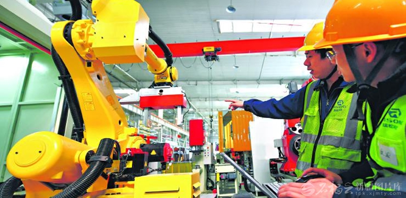 4月13日,乌鲁木齐经济技术开发区(头屯河区)两河高端制造科技产业园的中厚板容器载具项目共享工厂内,工作人员在调试机器人。该工厂配备激光切割线、焊接机器人等高端设备,吸引多家企业落地园区。 □石榴云/新疆日报记者邹懿摄