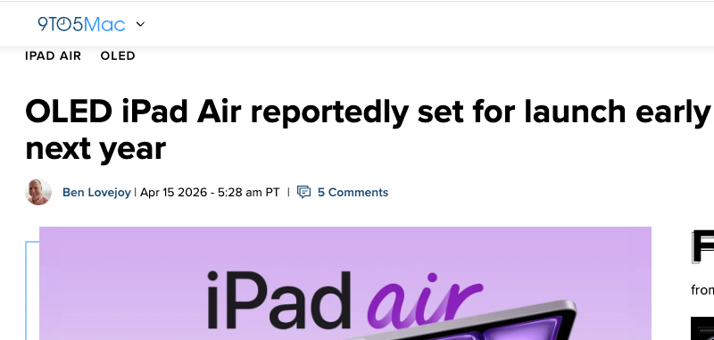 4月16日消息,随着苹果逐步推进旗下产品屏幕技术升级,OLED面板在iPad系列中的应用进程迎来新进展。据9to5mac报道,苹果有望于明年春季推出首款OLED版iPad Air。