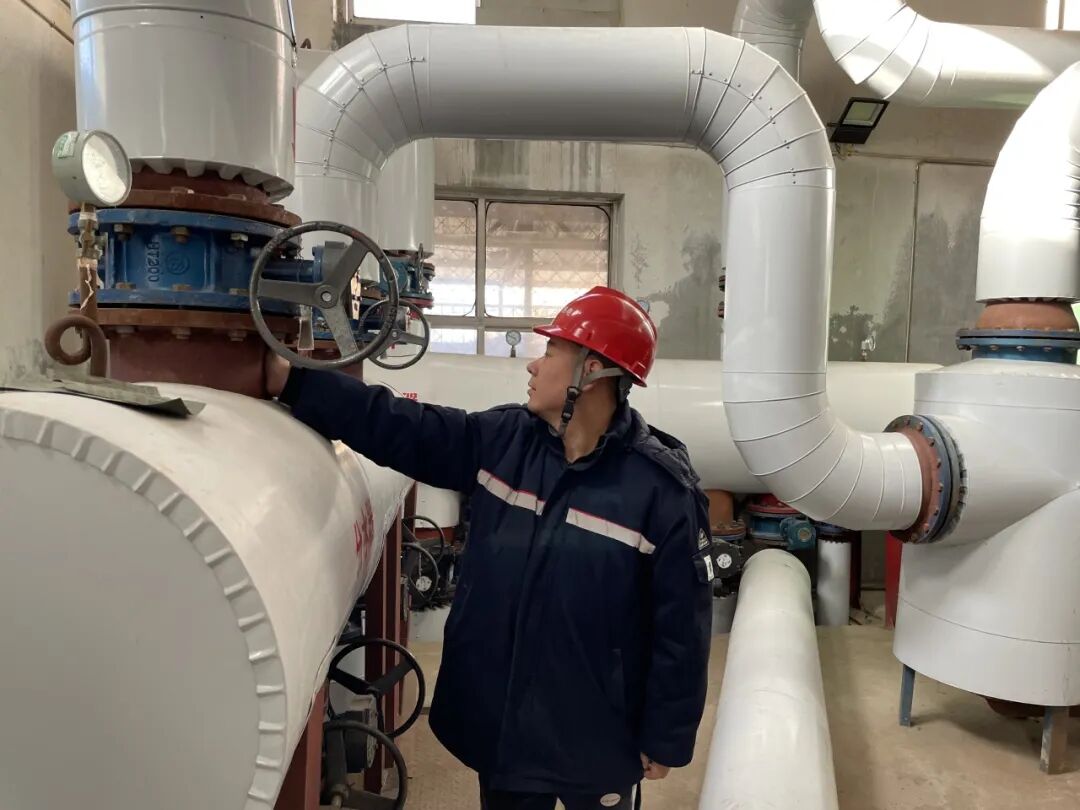 乍暖还寒之时,供热设备的平稳运行依旧重要,供热人员在换热设备的“动脉”与“阀门”之间反复穿梭着。他们顺着循环水管路逐一检查管道、阀门状态;打开控制柜,用手电照亮各种颜色的电线,查看有无因电火花导致的灼烧痕迹,以及压力传感器、温度探头的接线是否连接牢固可靠,这些“神经中枢”的完好,是换热站高效稳定运行的前提条件。
