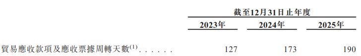 此外,公司的贸易应收款项及应收票据周转天数从2023年的127天被拉长至2024年的173天,2025年被进一步拉长至190天。