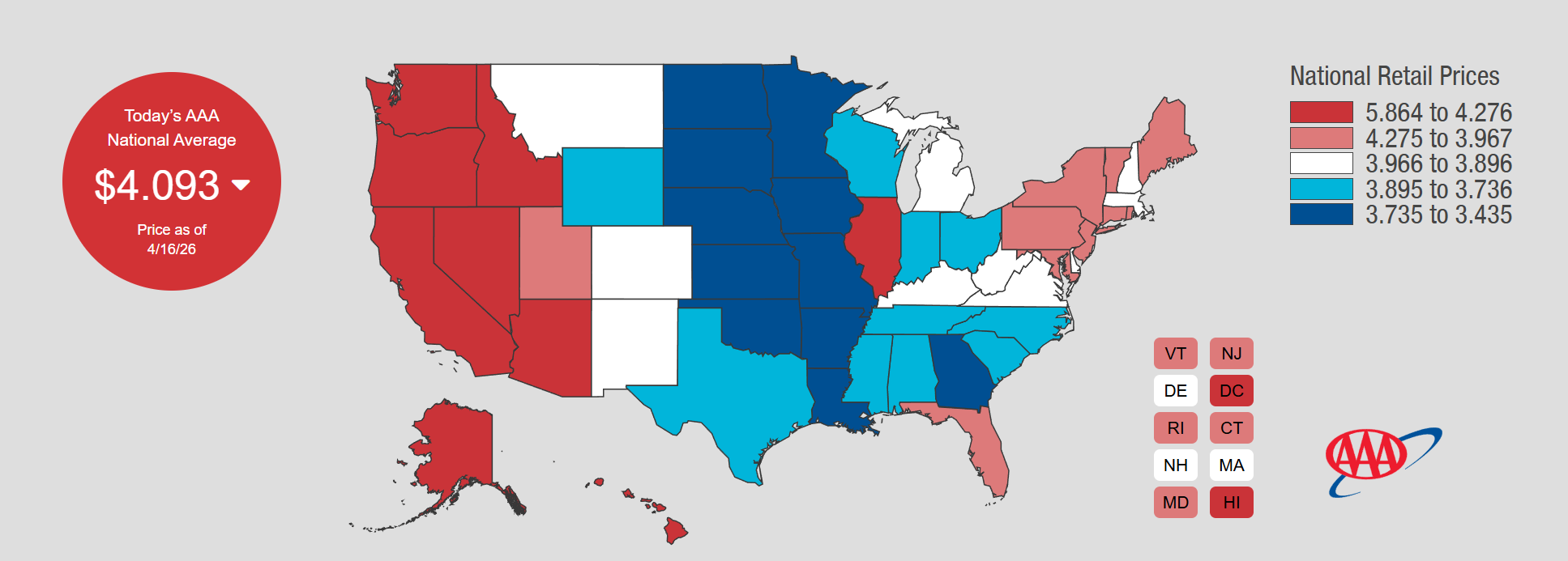 实际上,长期以来,即便是伊朗战争爆发前,加利福尼亚州的汽油价格在全美都一骑绝尘,因为存在地方税收因素以及其独特的环保政策所增加的成本。