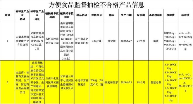 今年1月,国家市场监督管理总局披露一批不合格产品,其中西麦食品旗下、由河北西麦公司生产的“中老年营养燕麦片”被抽检出菌落总数不符合食品安全国家标准规定,5个样品检测值均已超出标准,存在明显的微生物污染风险。
