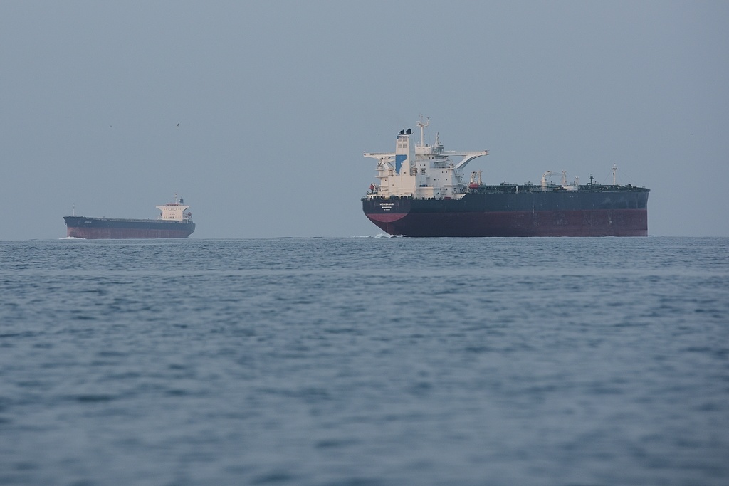 当地时间18日,伊朗格什姆岛附近的霍尔木兹海峡,油轮停泊在海上。