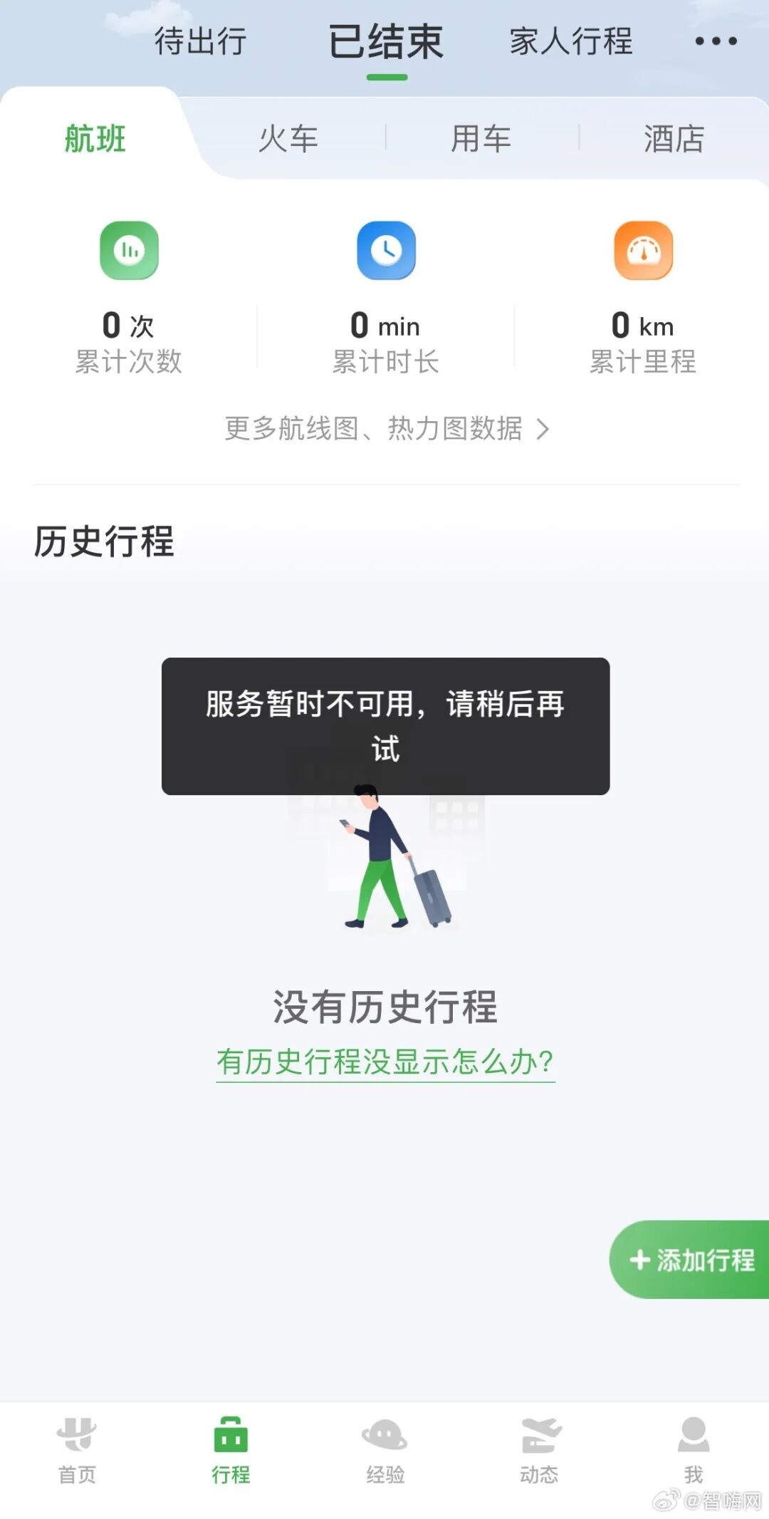 4月21日中午,航旅纵横App突发服务异常,大量用户打不开行程、买不了票,显示 “网络异常 / 服务不可用”,此次故障正值出行高峰,导致不少在机场的用户无法展示电子登机牌,现场出现排队拥堵情况,甚至有误机风险 ,截至目前,仍有不少人在反馈问题。