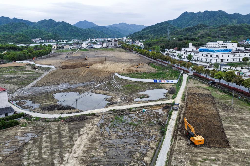 这是2026年4月9日拍摄的浙江诸暨同山镇正在建设的白酒产业社区项目(一期)施工现场(无人机照片)。新华社记者徐昱 摄