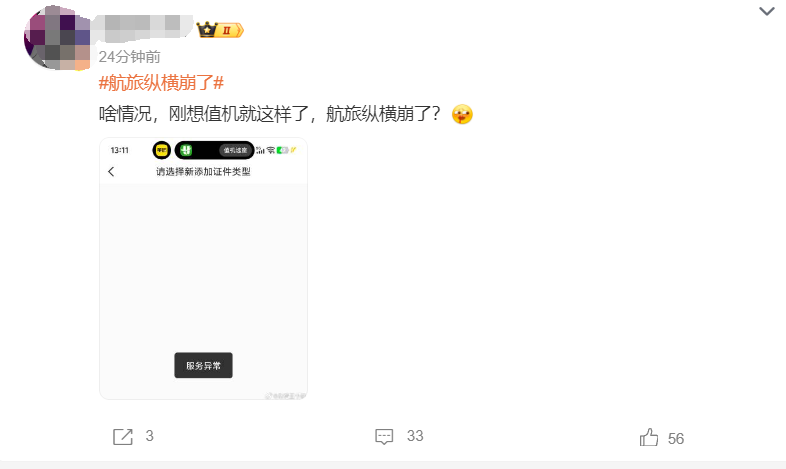 4 月 21 日,航旅纵横 App 突发服务异常,大量用户打不开行程、买不了票,显示 “网络异常 / 服务不可用”,相关话题#航旅纵横崩了#登上热搜。