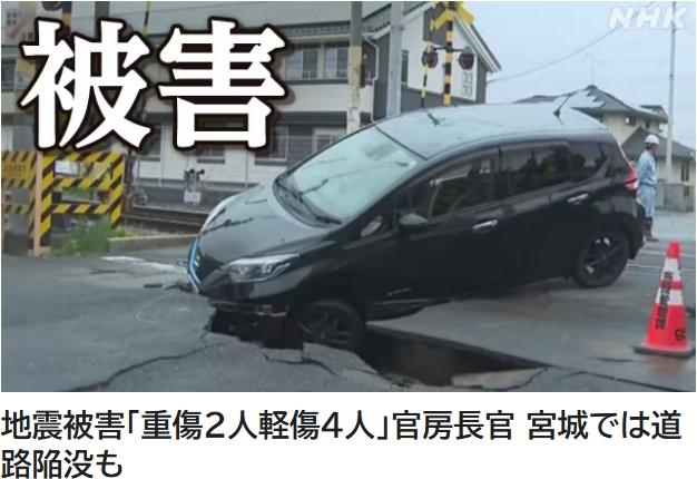 据报道,受此次地震影响,宫崎县石卷市出现道路塌陷的情况。青森县还报告多处建筑受损。