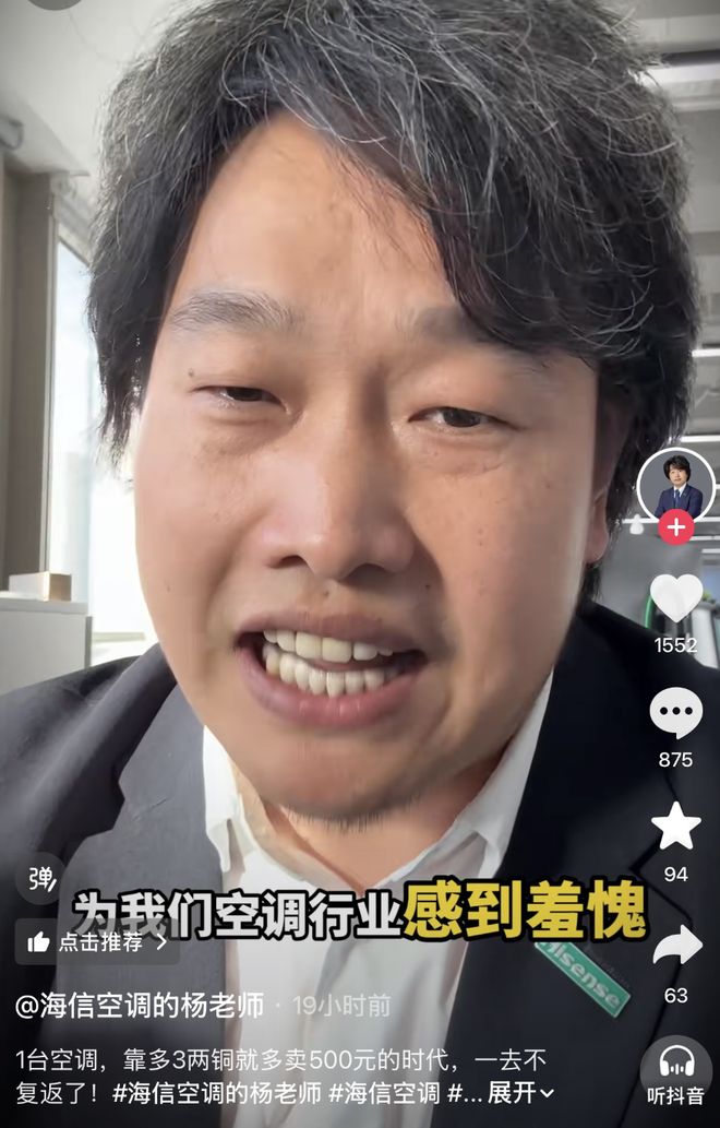4月21日晚间,海信空气事业部品牌总监杨祥玺发布视频回应称,2026年空调行业的口水仗仍纠缠在 “是否用铜、用了多少铜”的层面,令其为行业感到羞愧。