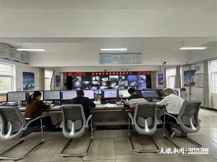 不远处的智能调度指挥中心,大屏幕实时跳动着矿区采掘、运输、通风等全流程数据,综采队主管队长张明明紧盯画面:“前端传感器和摄像头传回的实时信息,让井下‘一举一动’都清晰可见,发现异常能第一时间联动处置。”