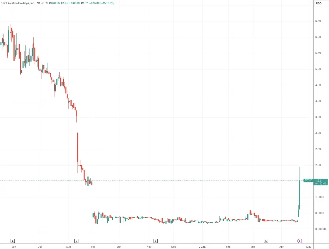 截至发稿,在粉单市场交易的精神航空股价暴涨近150%。由于在破产清算中,普通股价值可能被清零,所以即便暴涨后最新市值也只有4000万美元出头。
