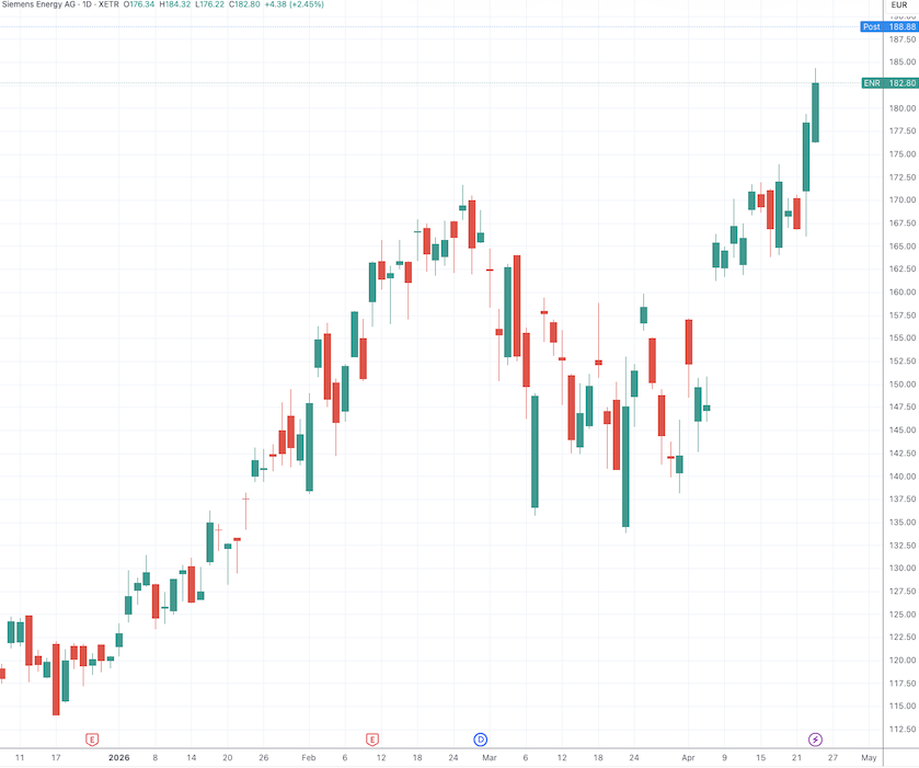 公司股价在周四刚刚刷新历史新高,最新市值接近1580亿欧元,目前是仅次于前母公司西门子和SAP的德国市值第三大公司。受最新公告影响,西门子能源在盘后交易时段继续拉涨。