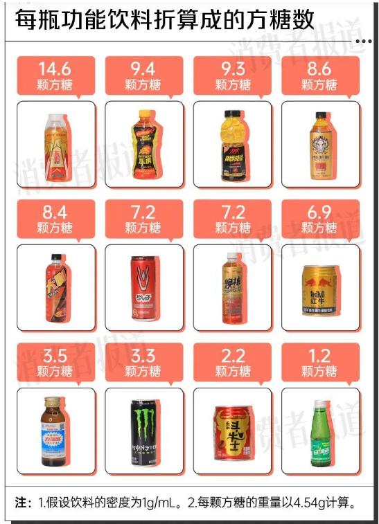 医学数据显示,功能饮料咖啡因含量每罐50至504毫克,而普通成人每日建议摄入量不超过400毫克;每天饮用250毫升,会增加年轻成年人焦虑、抑郁风险。此外,市面功能饮料糖含量最低1.32克/罐、最高37.62克/罐,远超每日25克的建议上限。据《消费者报道》对多个功能饮料测评,最高的1款东鹏特饮每瓶(500mL)含糖量最高(66.5g)更超出最高“警戒线”(50g),喝一瓶相当于摄入14.6颗方糖(每颗方糖以4.54g糖计)。消费者如果有“续杯”需求,或将摄取过量的糖。一瓶东鹏特饮所含糖分已超上限。除此外,记者发现在黑猫投诉等平台,东鹏特饮的维权纠纷也频发:消费者投诉扫码兑奖失败、中免饮瓶盖仍需付费、活动规则标注模糊等。
