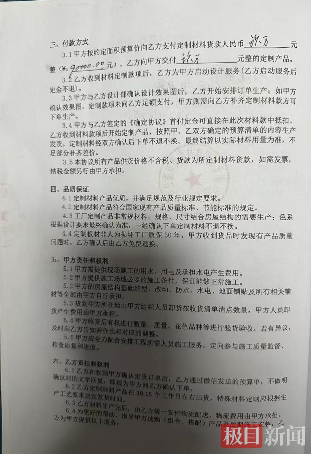 4月13日,愤慨无比的刘先生向极目新闻记者讲述了事情的经过。刘先生说,对方先口头承诺9万元包整屋装修,随后又用合同约定把装修变成购买材料,送来的材料还无合格资质证明。