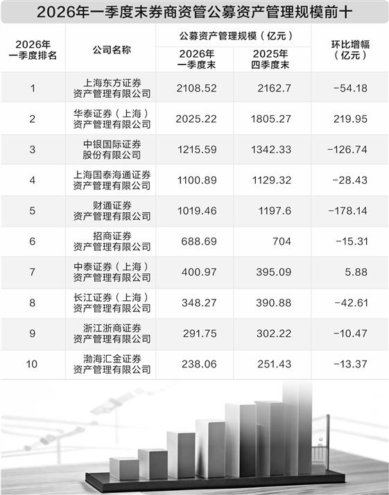 近日,随着公募基金2026年一季报披露完毕,券商资管的最新公募管理业务规模也浮出水面。