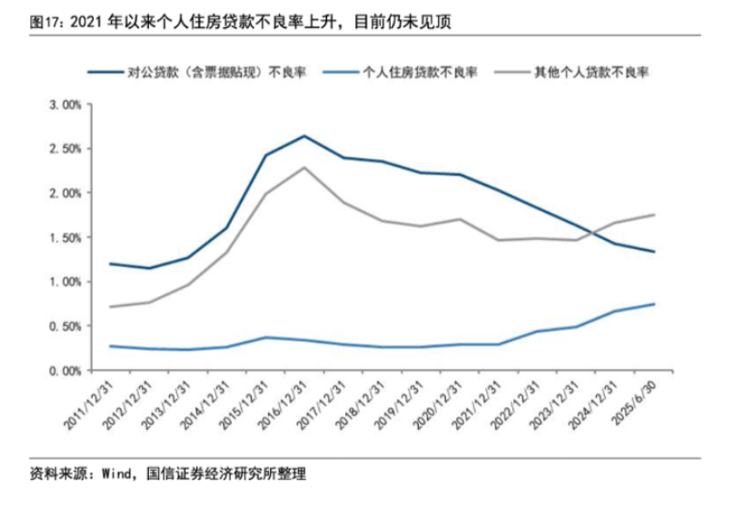 各类零售贷款风险亦在持续暴露,国信证券研报显示,包括个人住房贷款、消费贷款、信用卡贷款及个人经营性贷款在内的各类型零售贷款不良率都在上升。《中国不良资产行业发展研究(2025年)》数据显示,截至2024年末,不良资产存量规模预计约为8.5万亿元,当年处置规模达3.8万亿元,创下历史最高水平。