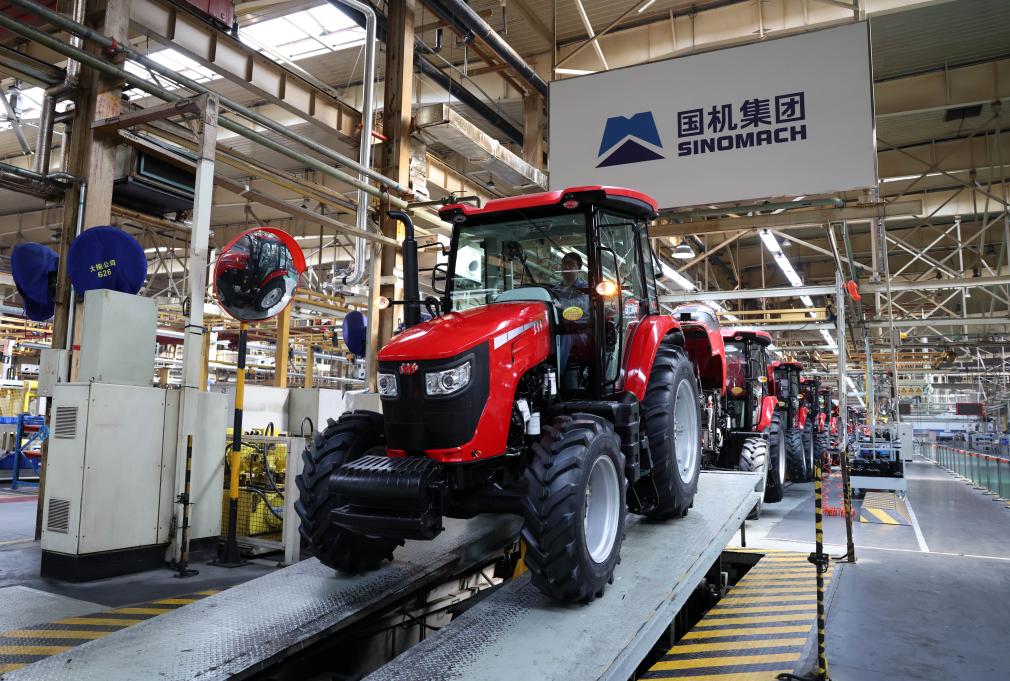 在中国中部大省河南,位于洛阳市的中国一拖集团有限公司现代化厂房中,一台台红色拖拉机被机械臂吊起,在流水线上完成组装。