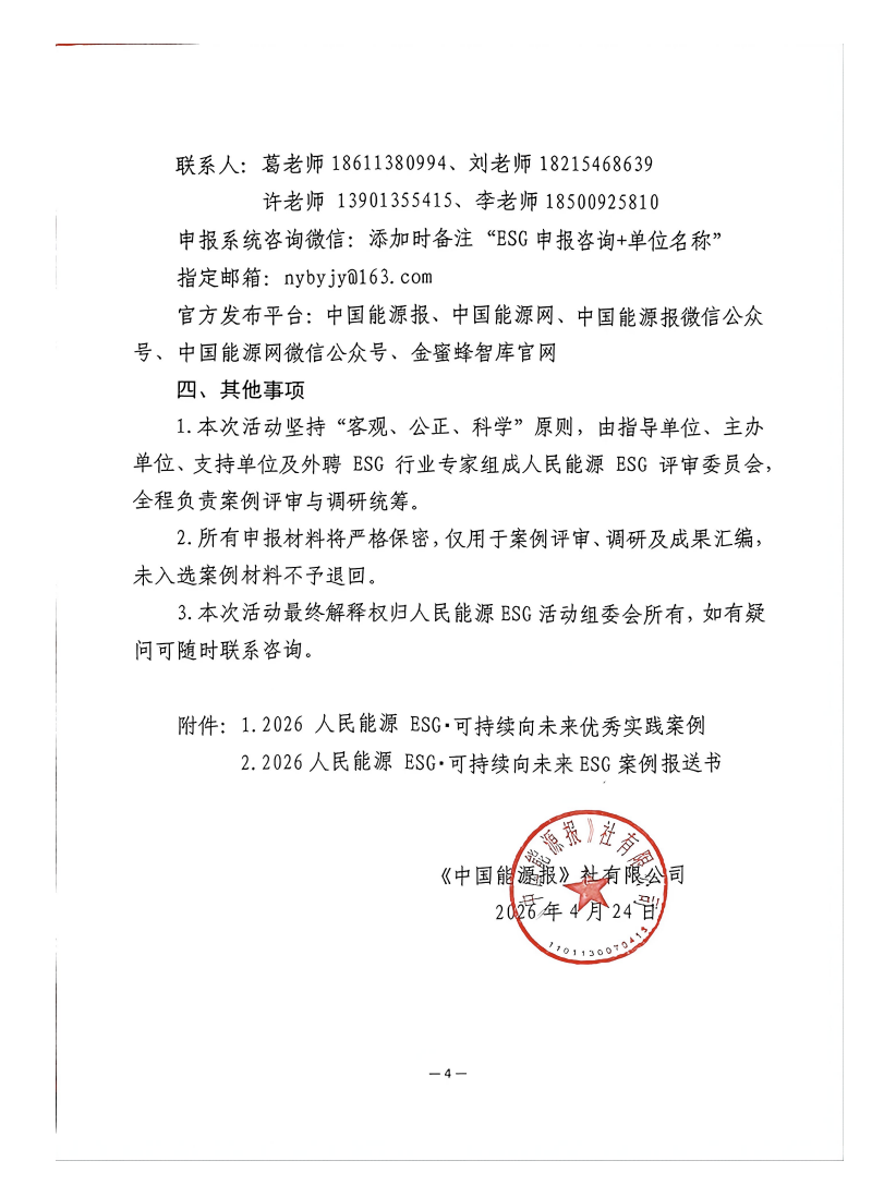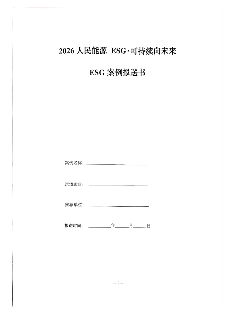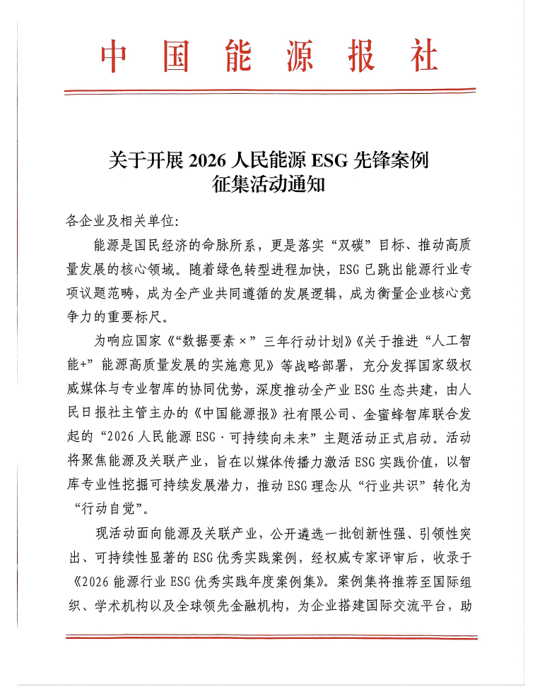 关于开展2026人民能源ESG 先锋案例 征集活动通知