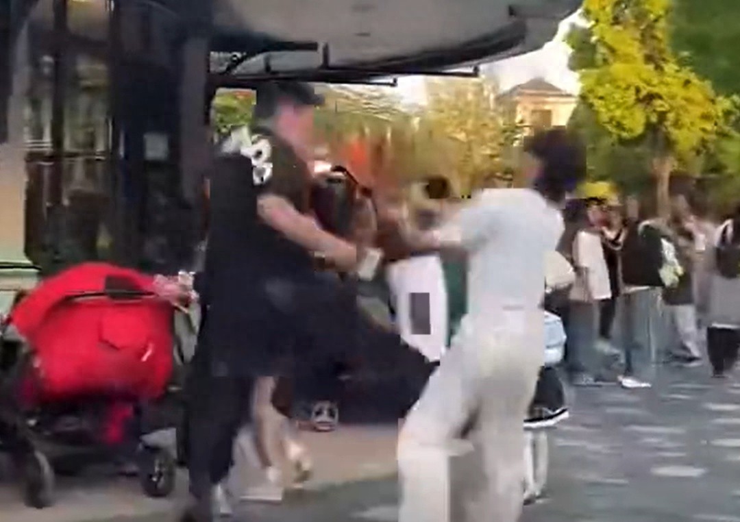 有网友发视频称,在上海迪士尼小镇某餐厅门口,一名男性游客因劝阻另一男子吸烟,遭对方掌掴、拳打脚踢。视频中,事发地餐厅门口有多人在排队等位,双方发生肢体冲突时,有身着迪士尼制服的女性工作人员试图进行劝阻无果。