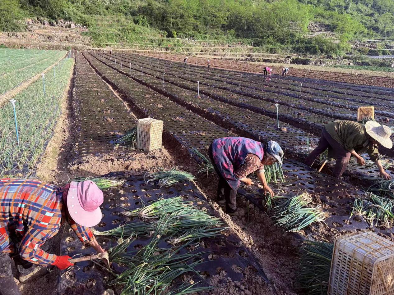 4月25日,正值春耕春种关键期,重庆市丰都县武平镇坝周村香葱基地里,数十名工人抢抓晴好天气,忙着香葱分种移栽,为全年丰产丰收打下基础。