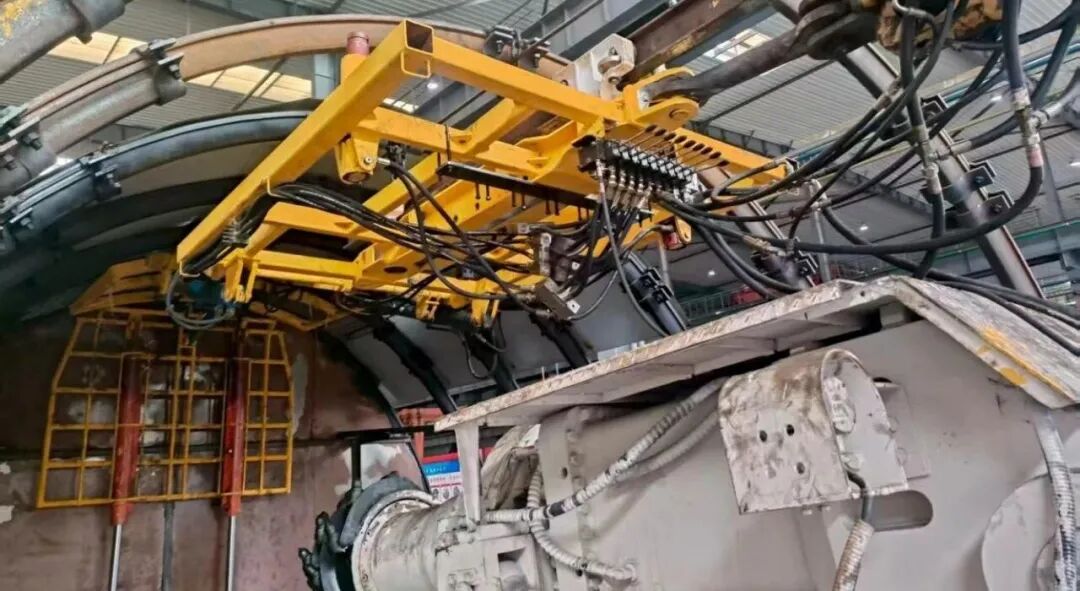 最关键的设计是“悬挂”。设备挂在顶部轨道上,与综掘机机身互不干扰,掘进机专注掘进作业,支护装置同步开展支护作业,两者可实现交错并行,彻底破解了空间干涉的难题。