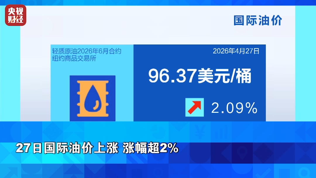 27日国际油价上涨 涨幅超2%