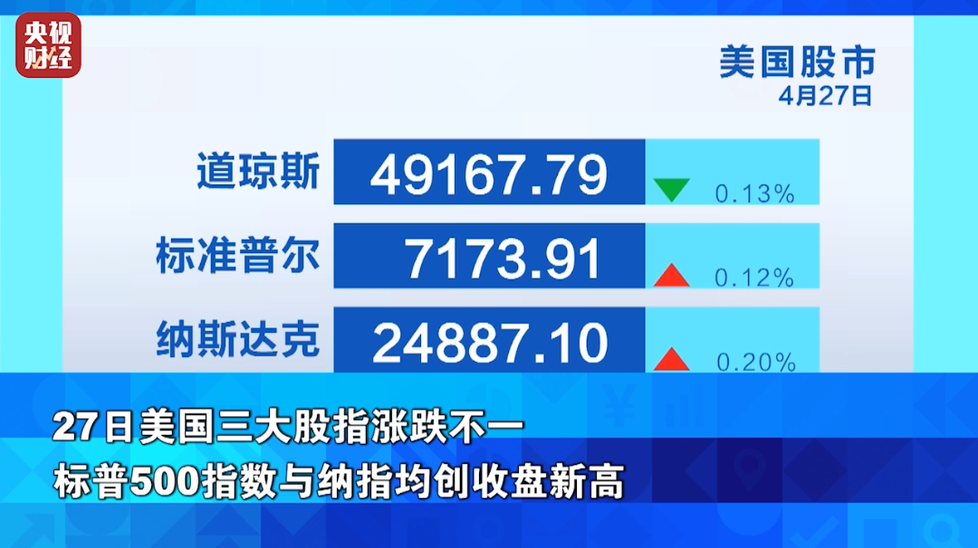 27日美国三大股指涨跌不一 标普500指数与纳指均创收盘新高