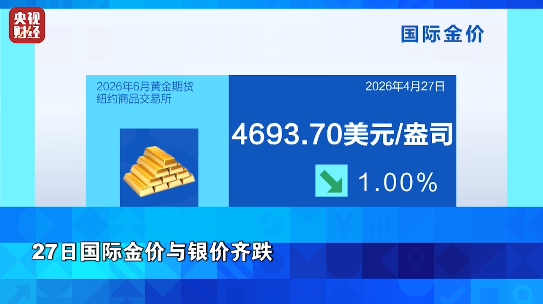 27日国际金价与银价齐跌