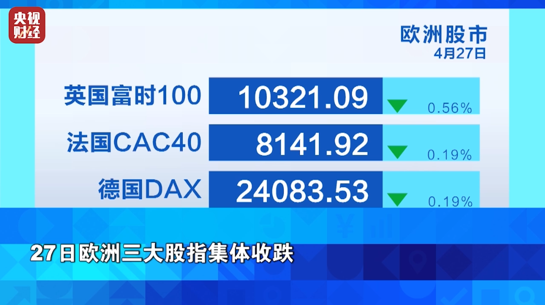 27日欧洲三大股指集体收跌