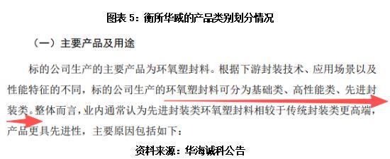 作为对比,同为内资环氧塑封料第一梯队的衡所华威(已被华海诚科收购),其产品划分标准便与中科科化存在明显差异。据华海诚科公告,衡所华威的环氧塑封料产品分为基础类、高性能类、先进封装类。