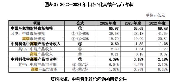 据首轮问询函回复文件,2024年,中科科化的高端产品市占率仅为1.07%。