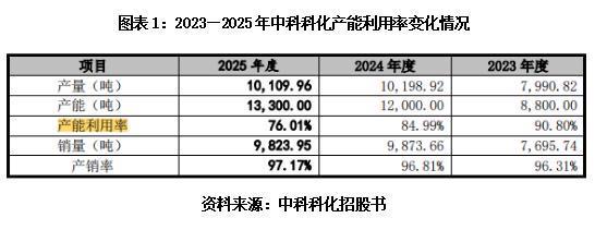 然而,招股书显示,2023—2025年,中科科化的环氧塑封料产能利用率分别为90.80%、84.99%、76.01%,2025年已降至76.01%,且当年销量较2024年出现下滑。在现有产能尚未饱和、销量下滑的情况下,大幅扩产的规划让市场对其产能消化能力打上了问号。