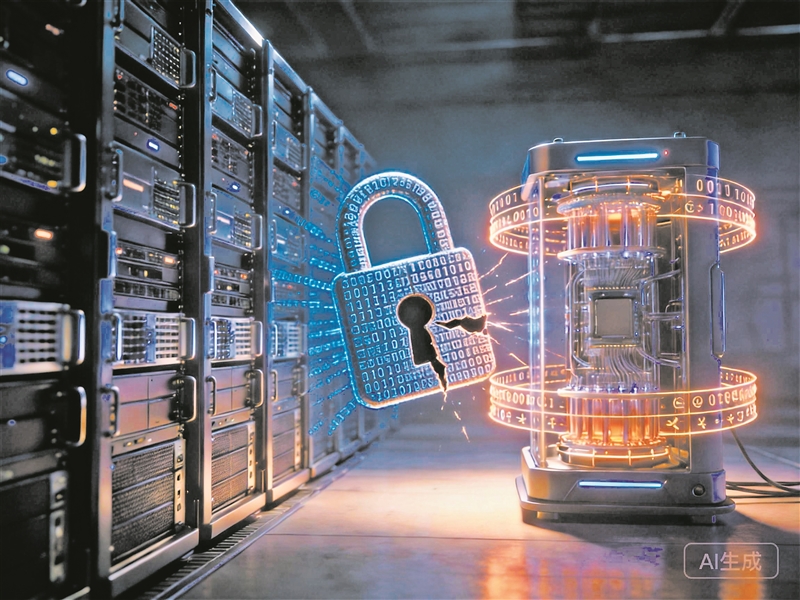 随着量子计算机规模扩大和量子算法不断发展,量子计算机或许能以更少的资源,更快破解现代密码。图片由AI生成