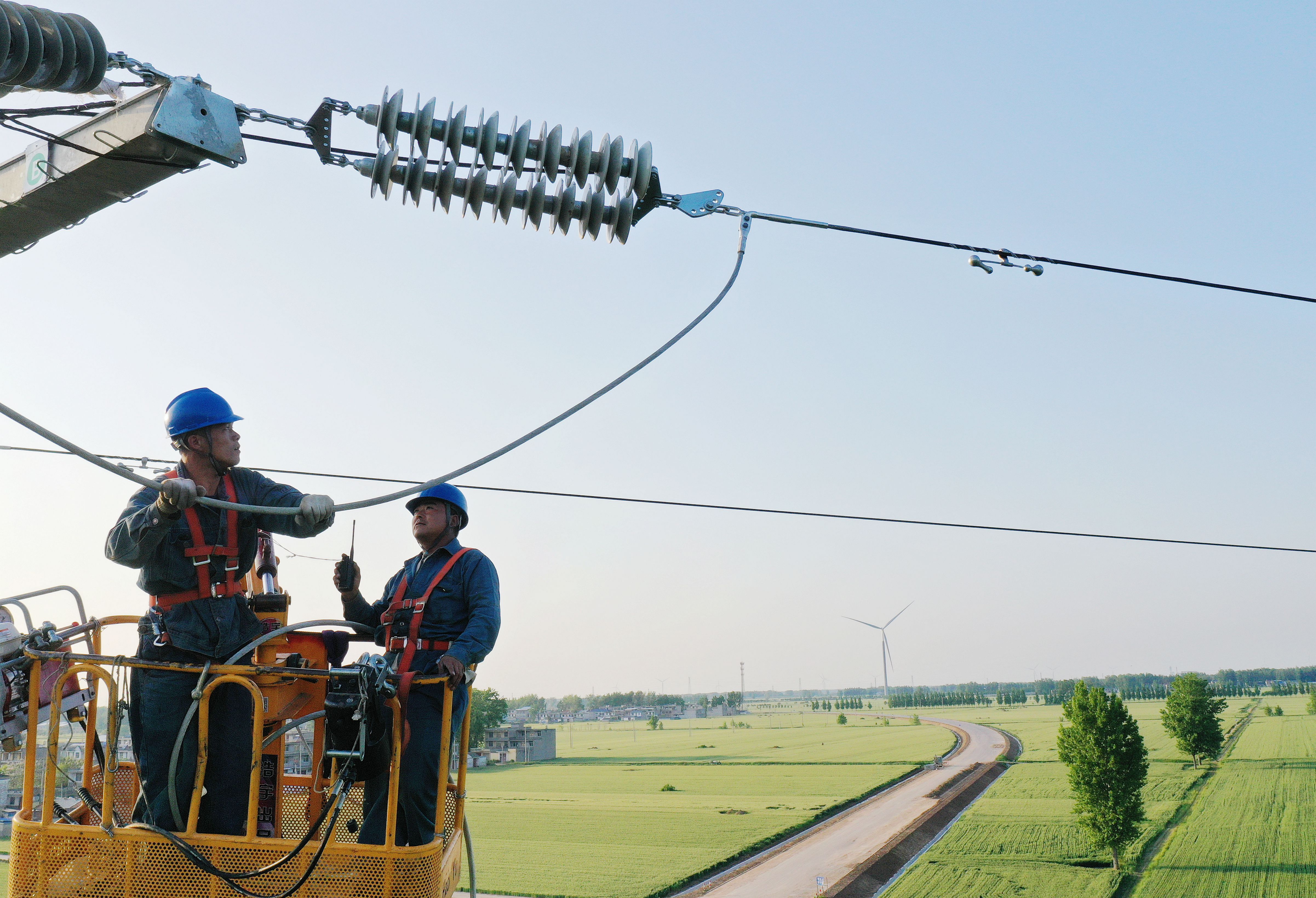 连日来,国网安徽亳州涡阳县供电公司组织电力工作人员抢抓晴好天气,加快推进涡阳县110千伏焦北771线电网工程建设进度,确保本月底完成工程建设任务,为当地经济社会发展以及即将到来的“三夏”用电安全提供可靠电力保障。(人民日报)