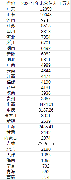目前,31个省份已全部披露了2025年的常住人口数据。相比2024年,有7个省份常住人口出现了增长,分别是广东、浙江、新疆、海南、上海、西藏和宁夏。其中,广东新增常住人口达79万,位居第一。