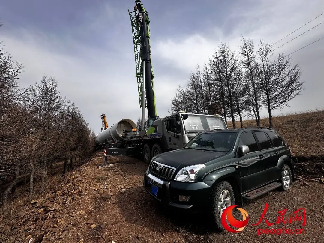 “二期是2024年9月开始施工的,我们就干了几个月,他们(祥通公司)去了一帮人,把路堵了,说山是他们的,不让干。”负责吊装工作的刘强称,遭遇阻工后,施工车辆被扣在山上几个月才撤下来,目前还有两辆救援车和几截未安装的塔筒在山上,“一年多了,路被堵了,上不去也下不来”。