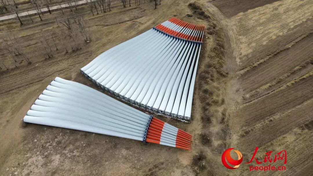 风电场停工后,部分风力发电机叶片被放置在山下。人民网记者 黄钰摄
