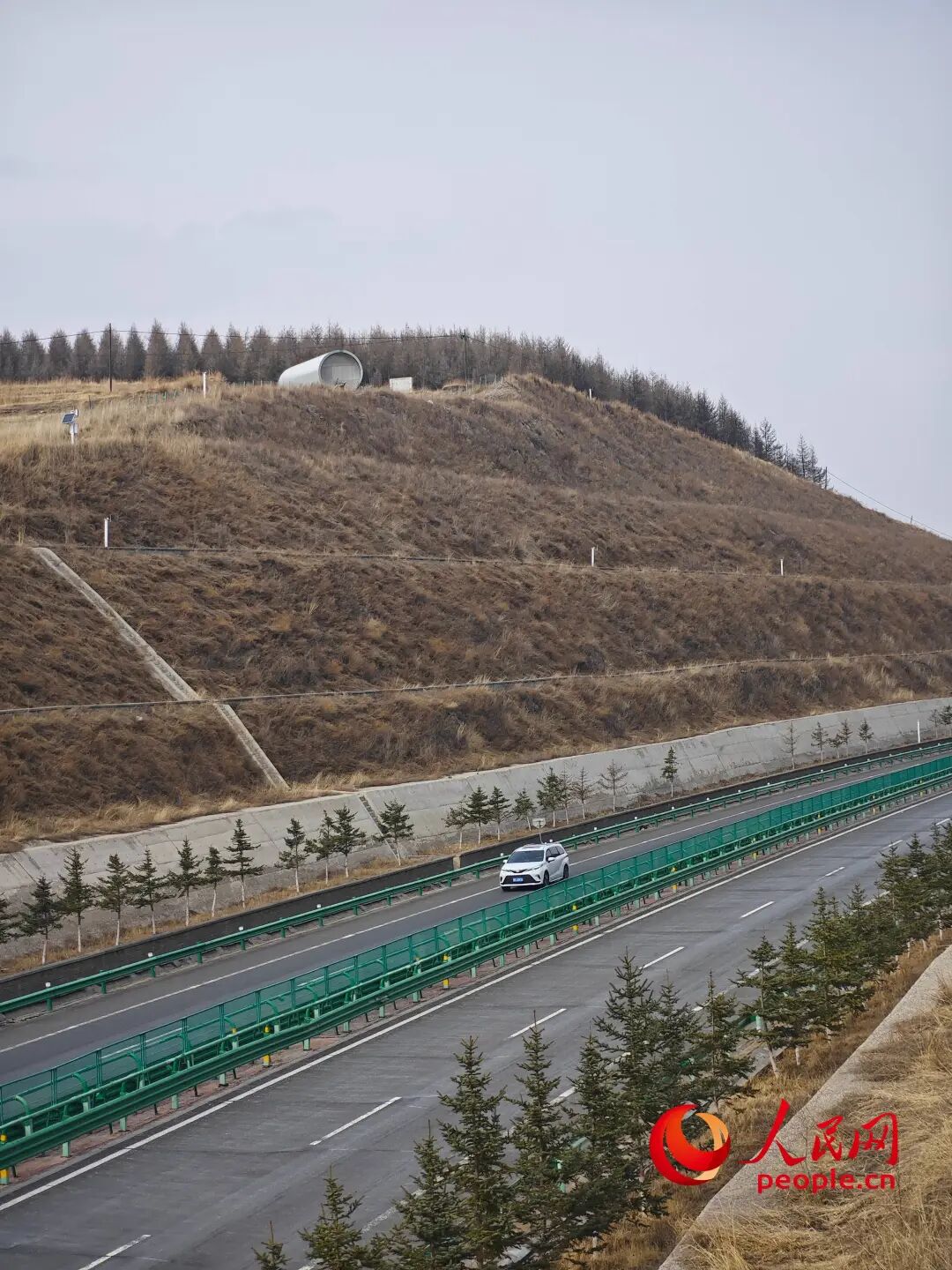 G95首都环线高速战海乡段,一截塔筒被放置在山顶。人民网记者 黄钰摄