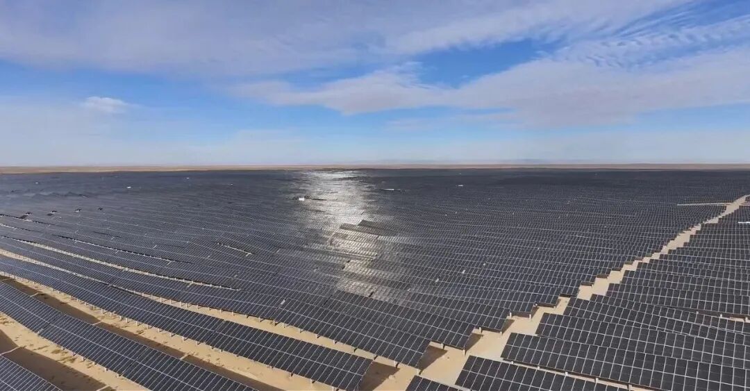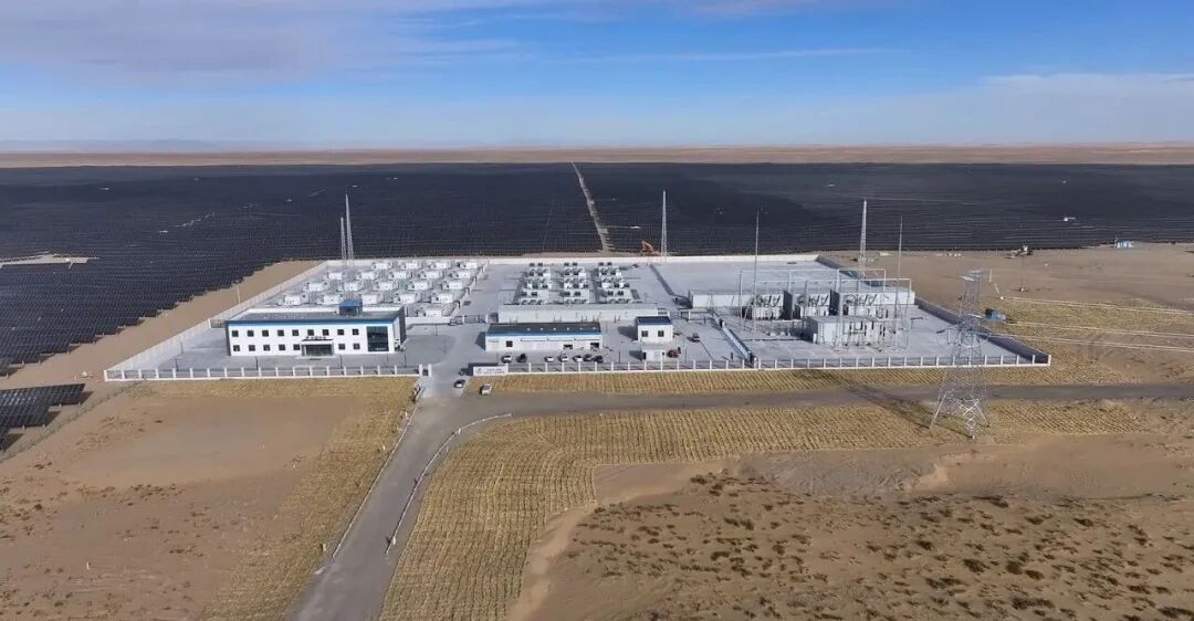 在内蒙古华电高新区片区苏巴尔干光储电站现场,155万块双面单晶硅光伏组件通过集电线路接入升压站,最终并入500千伏金湖站,形成“源网荷储”一体化的新能源供应体系。该项目位于乌兰布和沙漠腹地,总投资26.79亿元,并配套建设一座220kV升压站及120MW/240MWh储能装置,形成从能源生产、储存到并网输送的全链条绿色能源体系。同时,该项目采用“板上发电、板下种植、治沙改土”的模式,累计修复治理沙漠面积9.6万亩,实现荒漠土地的生态化改良,也为阿拉善建设亿千瓦级新能源大基地再添动能。