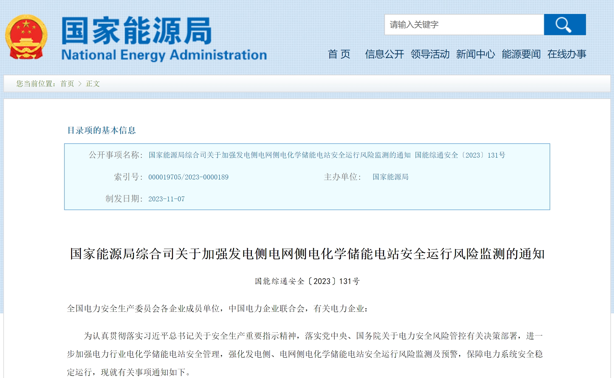 为认真贯彻落实习近平总书记关于安全生产重要指示精神,落实党中央、国务院关于电力安全风险管控有关决策部署,进一步加强电力行业电化学储能电站安全管理,强化发电侧、电网侧电化学储能电站安全运行风险监测及预警,保障电力系统安全稳定运行,现就有关事项通知如下。