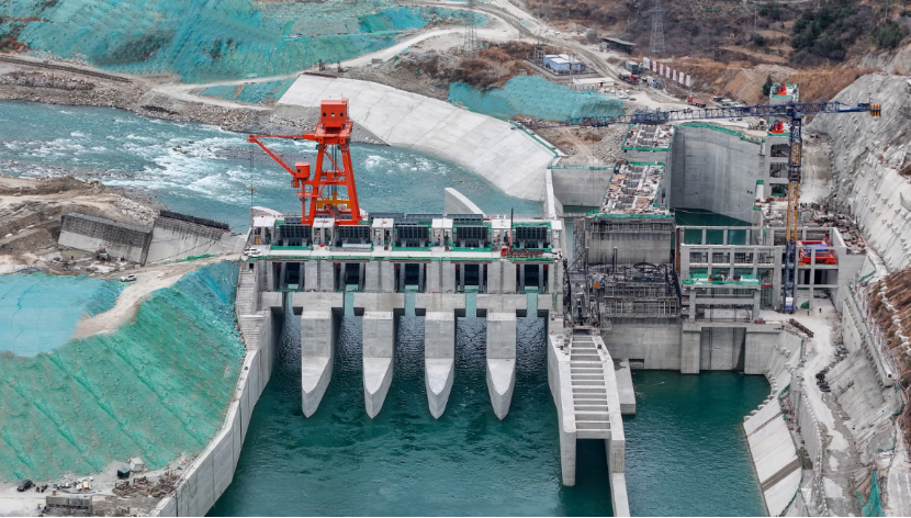 截至目前,硬梁包水电站首部枢纽实现闸坝过流,进入三期施工;2号引水隧洞全线贯通,衬砌完成82%;主厂房发电机层全面交面,首台机组转子吊装完成,工程整体建设完成85%。